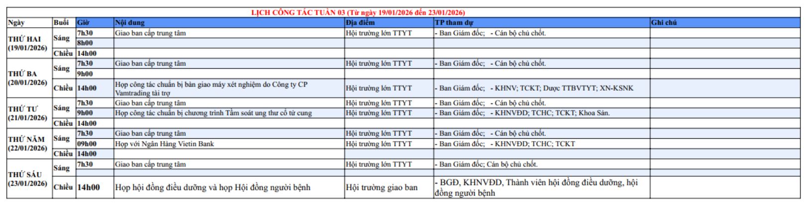 Tuần 3, năm 2026 (Từ ngày 19/01/2025 đến ngày 23/01/2025)