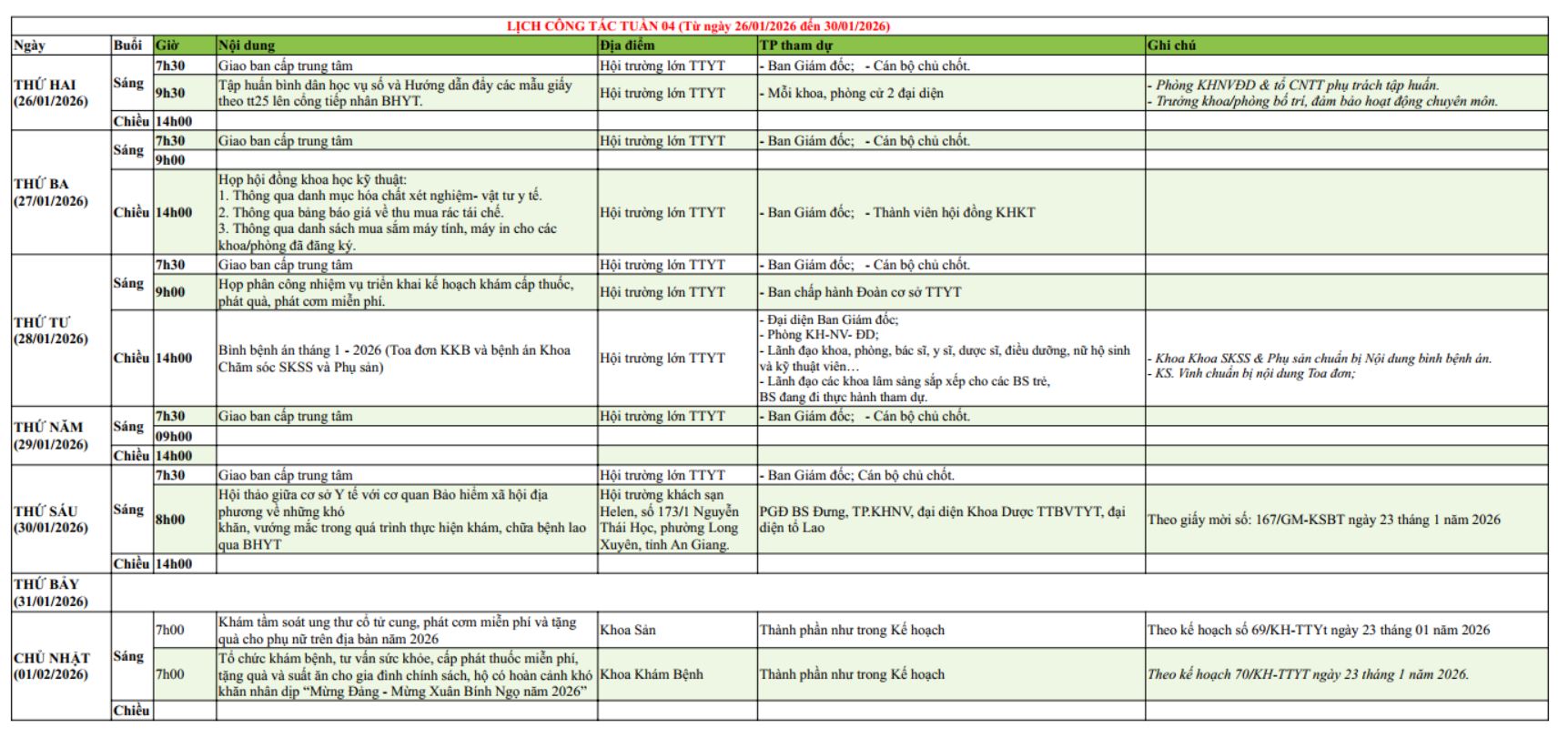 Tuần 4, năm 2026 (Từ ngày 26/01/2025 đến ngày 30/01/2025)