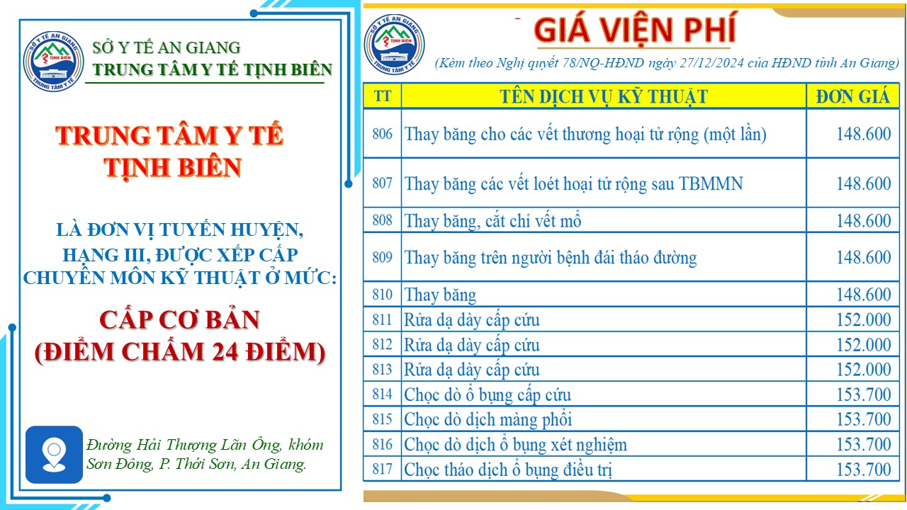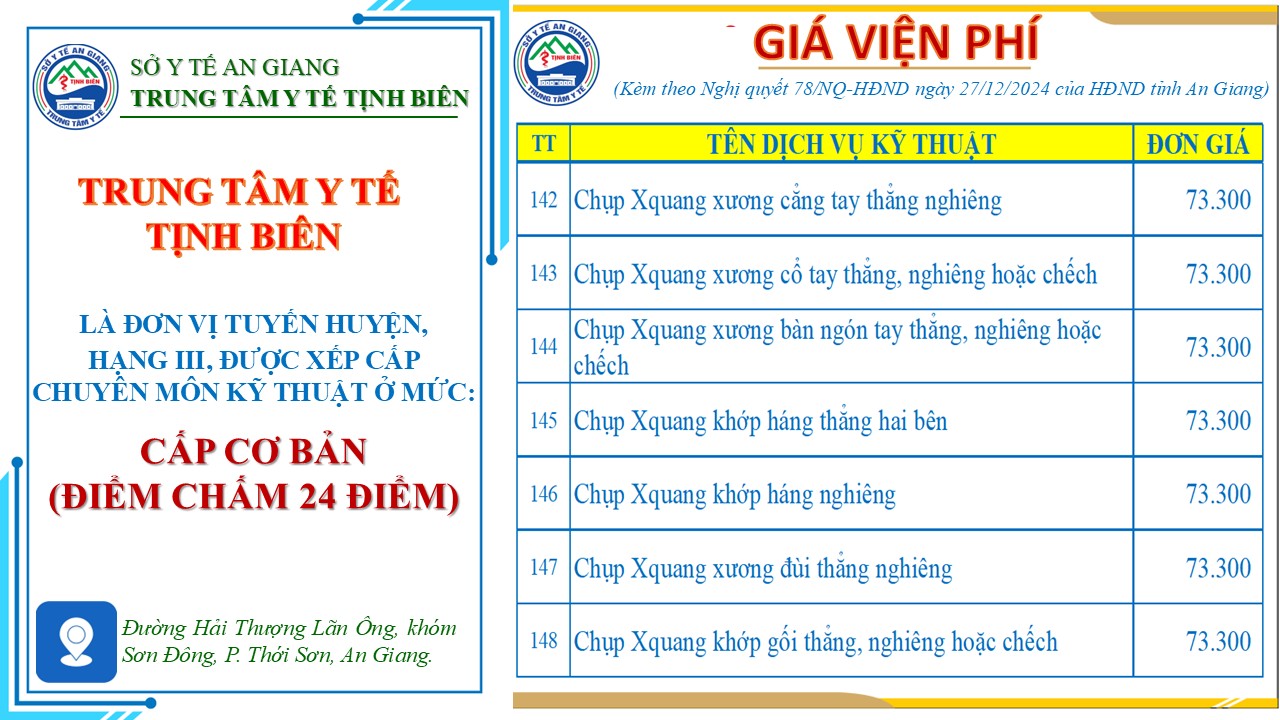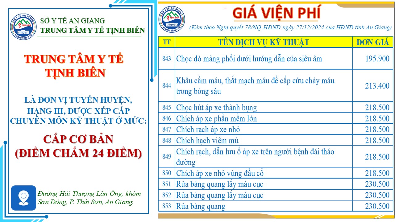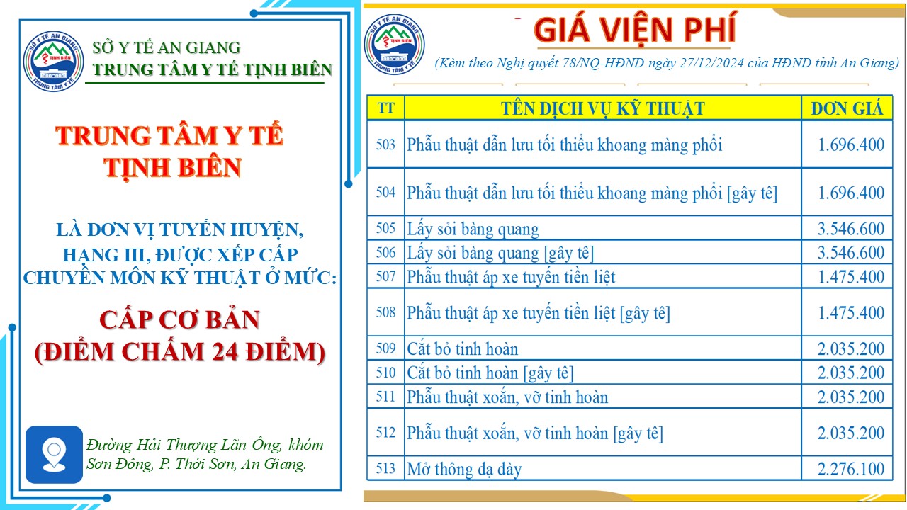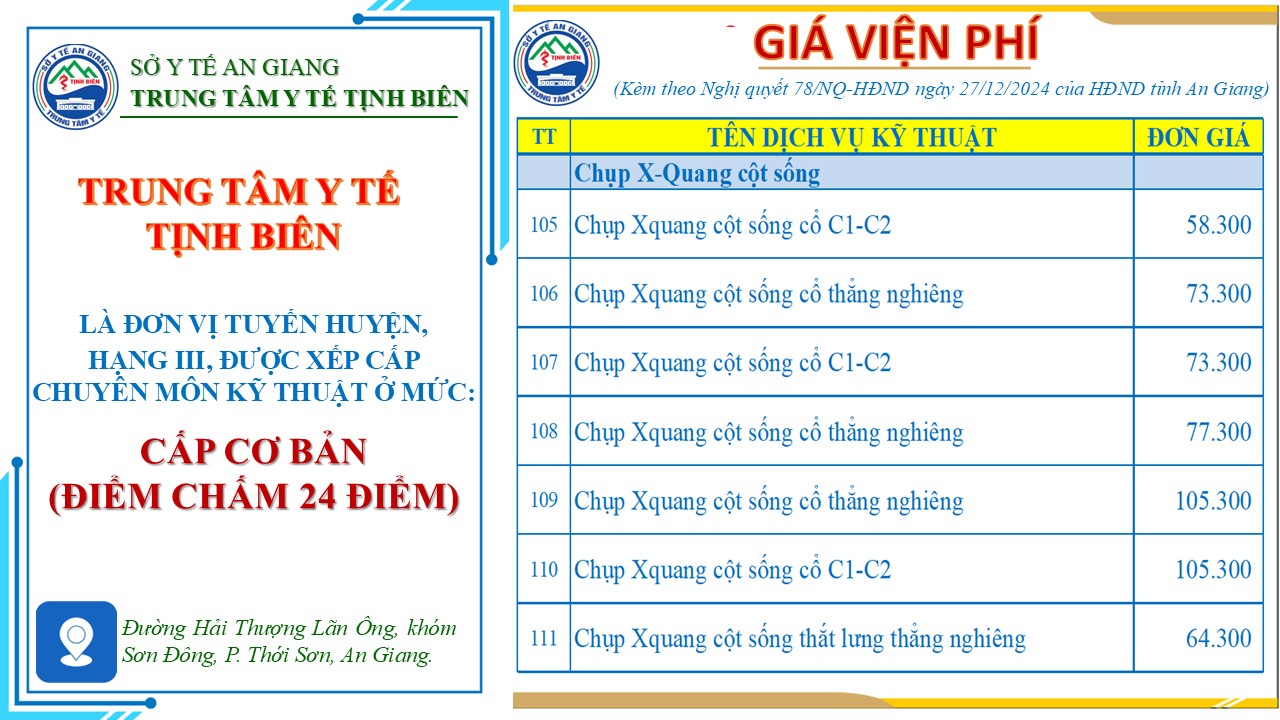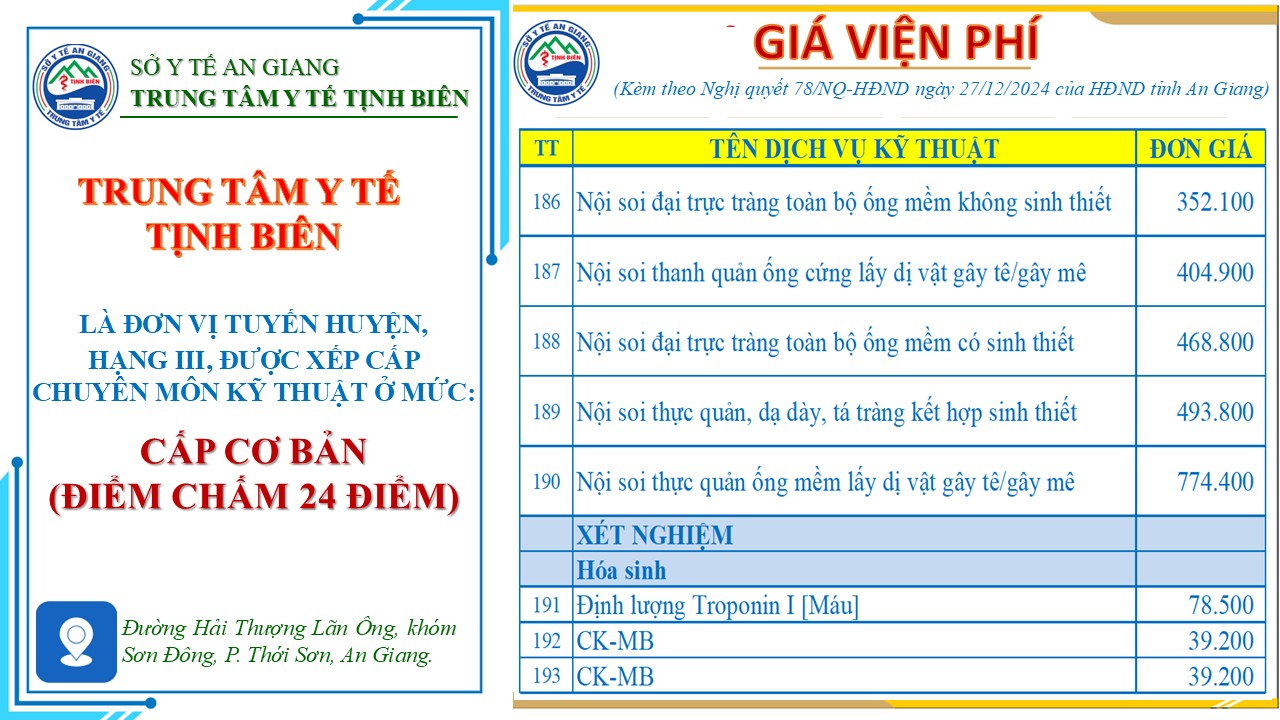 Đây là bảng danh mục giá viện phí gồm 1.013 danh mục, tổng cộng 129 slide. Mỗi slide tự động chuyển trong 08 giây. Trong đó bao gồm các nhóm: Tiền công khám, tiền giường, xét nghiệm, chẩn đoán hình ảnh, phẫu thuật, thủ thuật v.v..