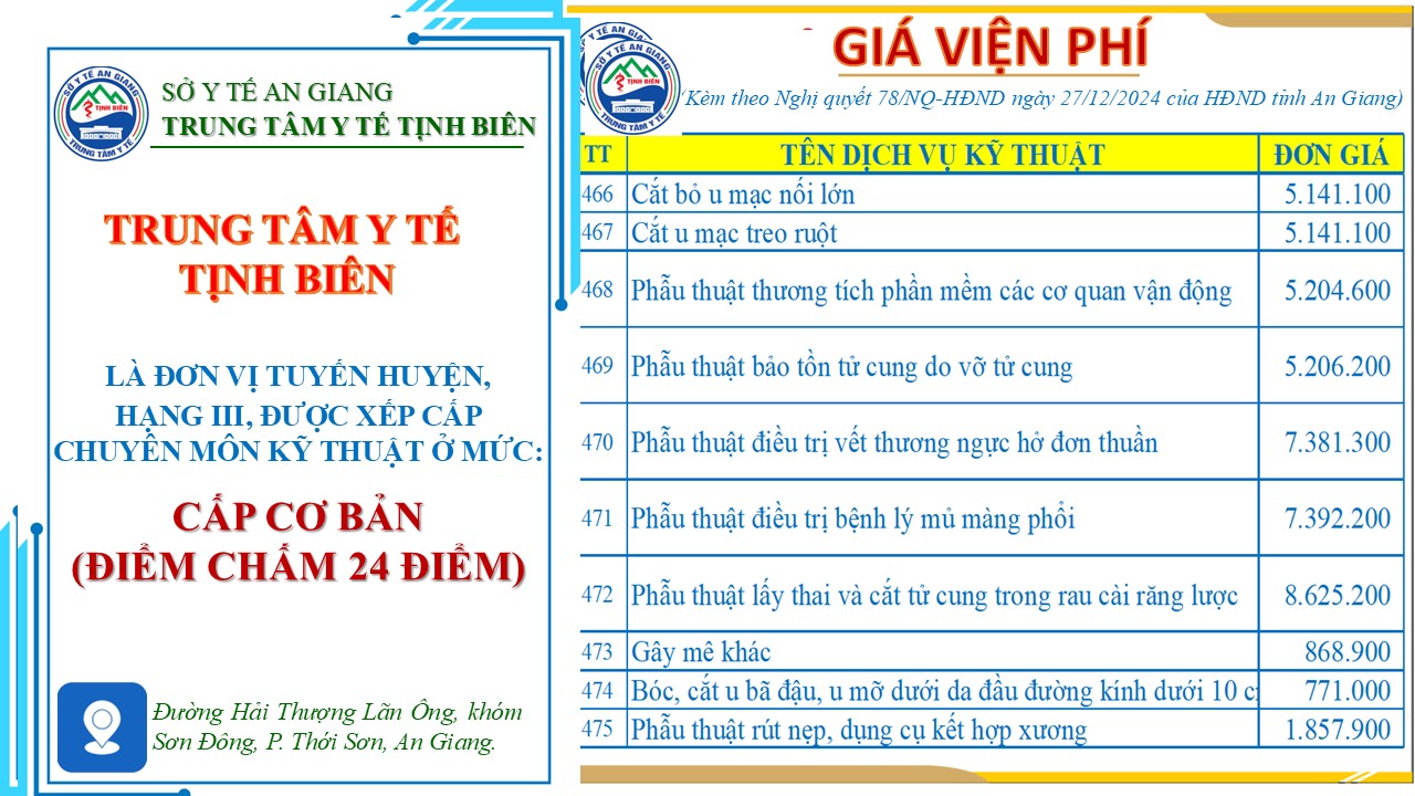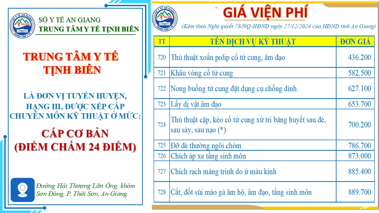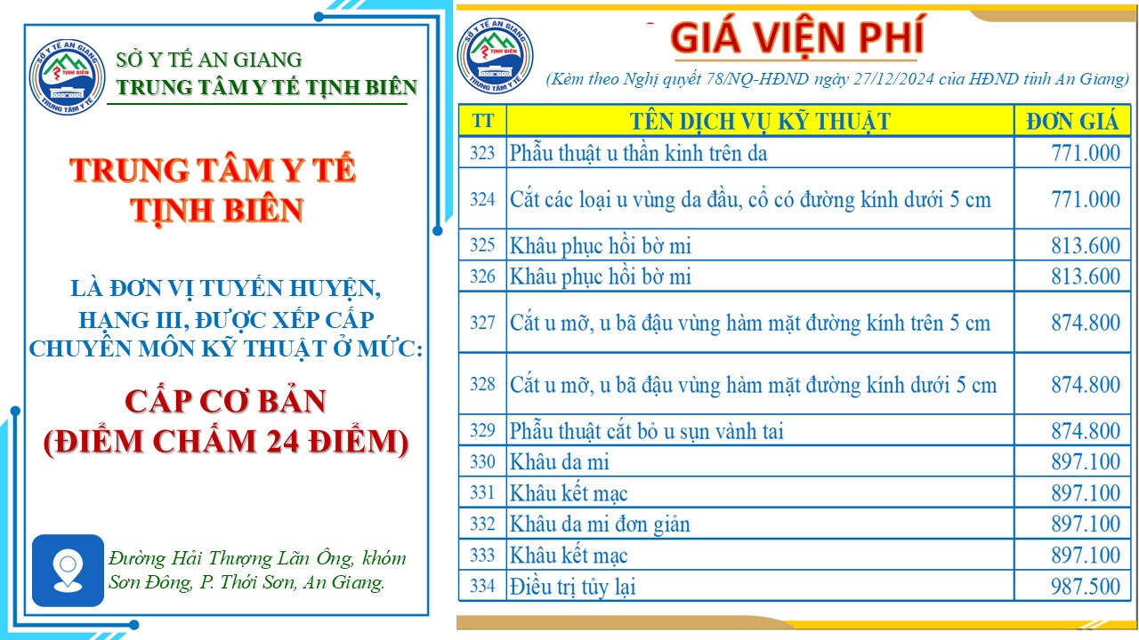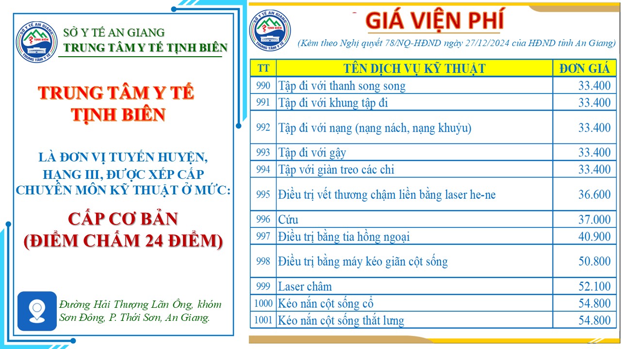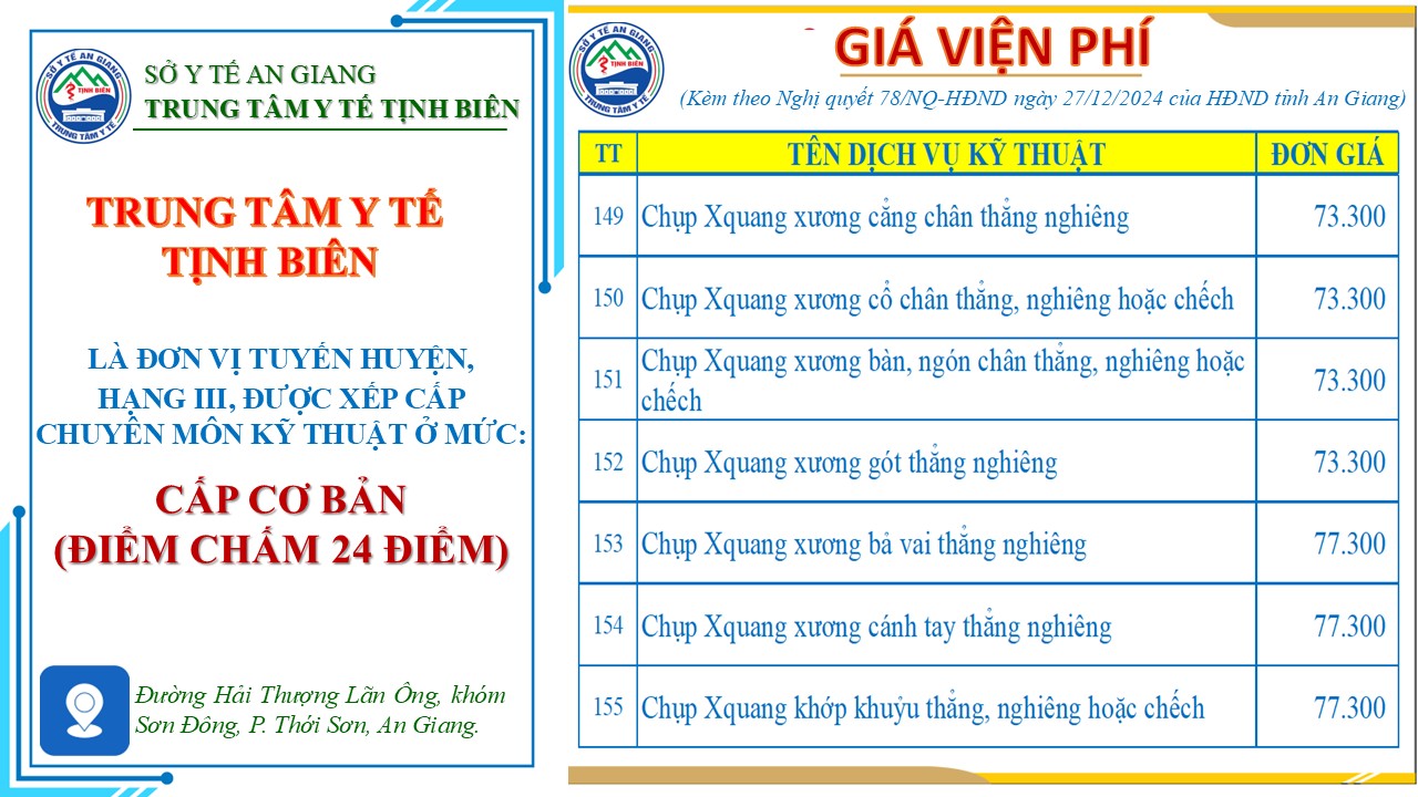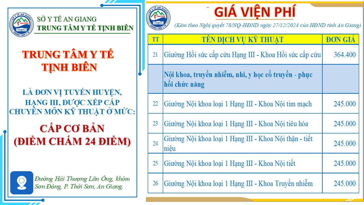 Đây là bảng danh mục giá viện phí gồm 1.013 danh mục, tổng cộng 129 slide. Mỗi slide tự động chuyển trong 08 giây. Trong đó bao gồm các nhóm: Tiền công khám, tiền giường, xét nghiệm, chẩn đoán hình ảnh, phẫu thuật, thủ thuật v.v..
