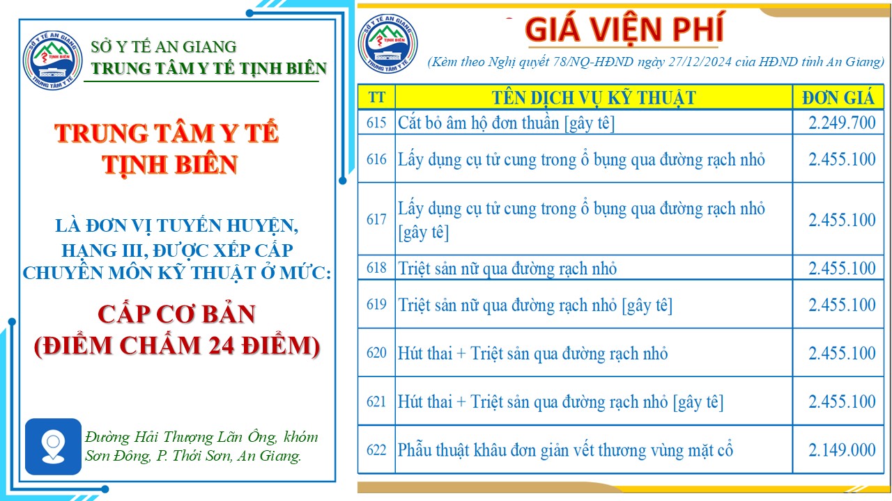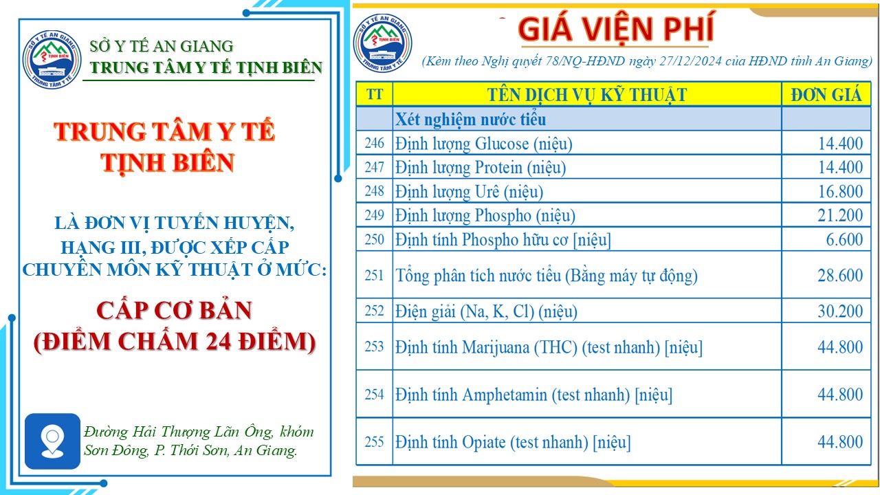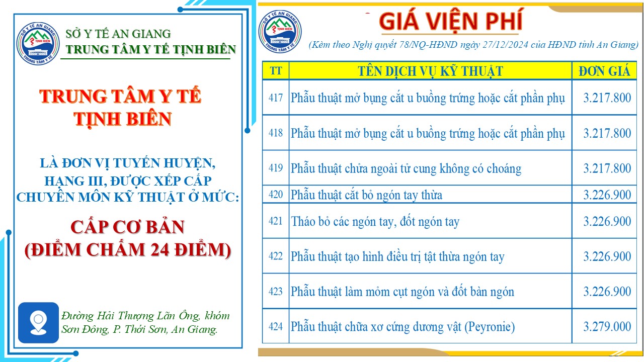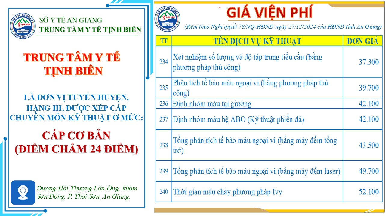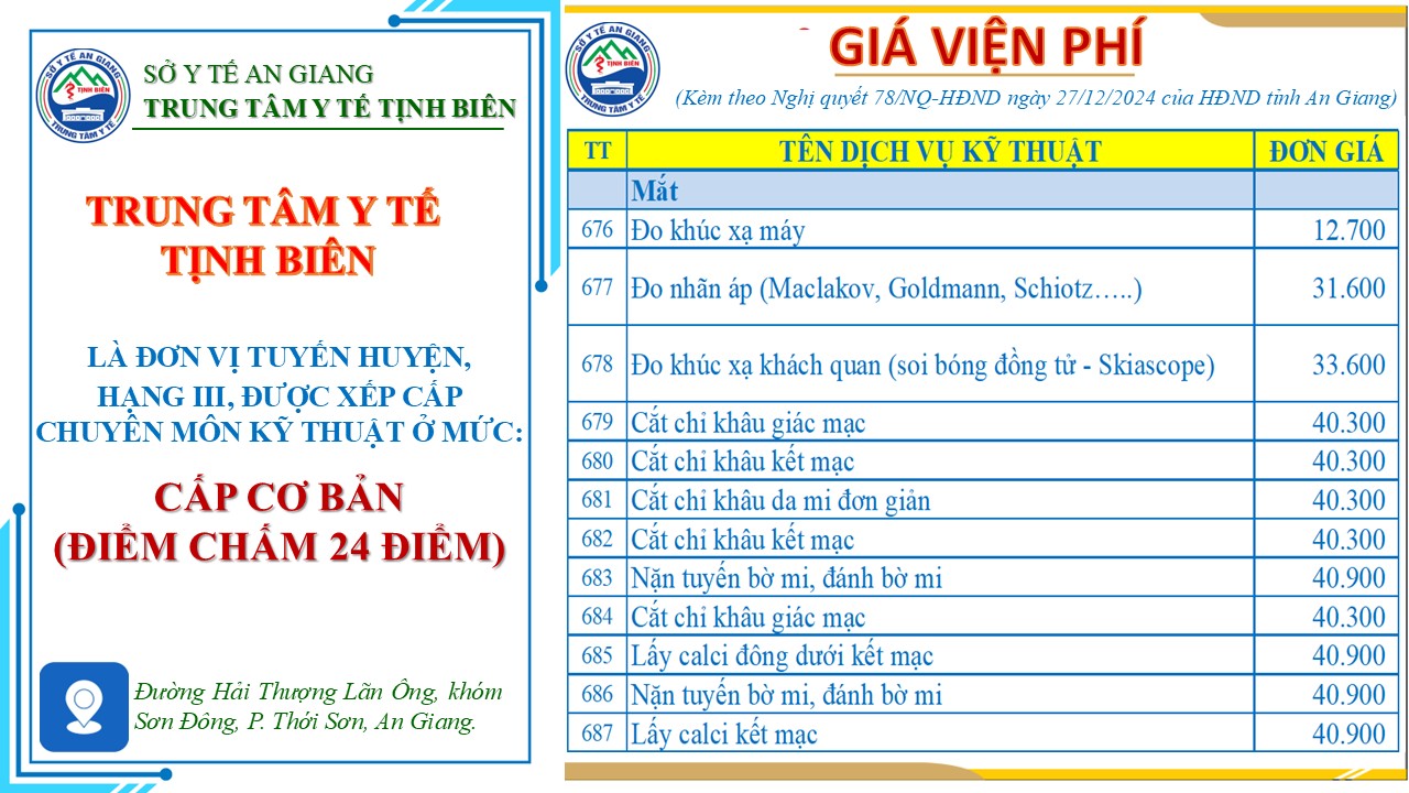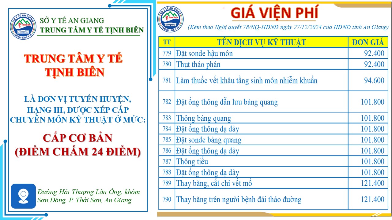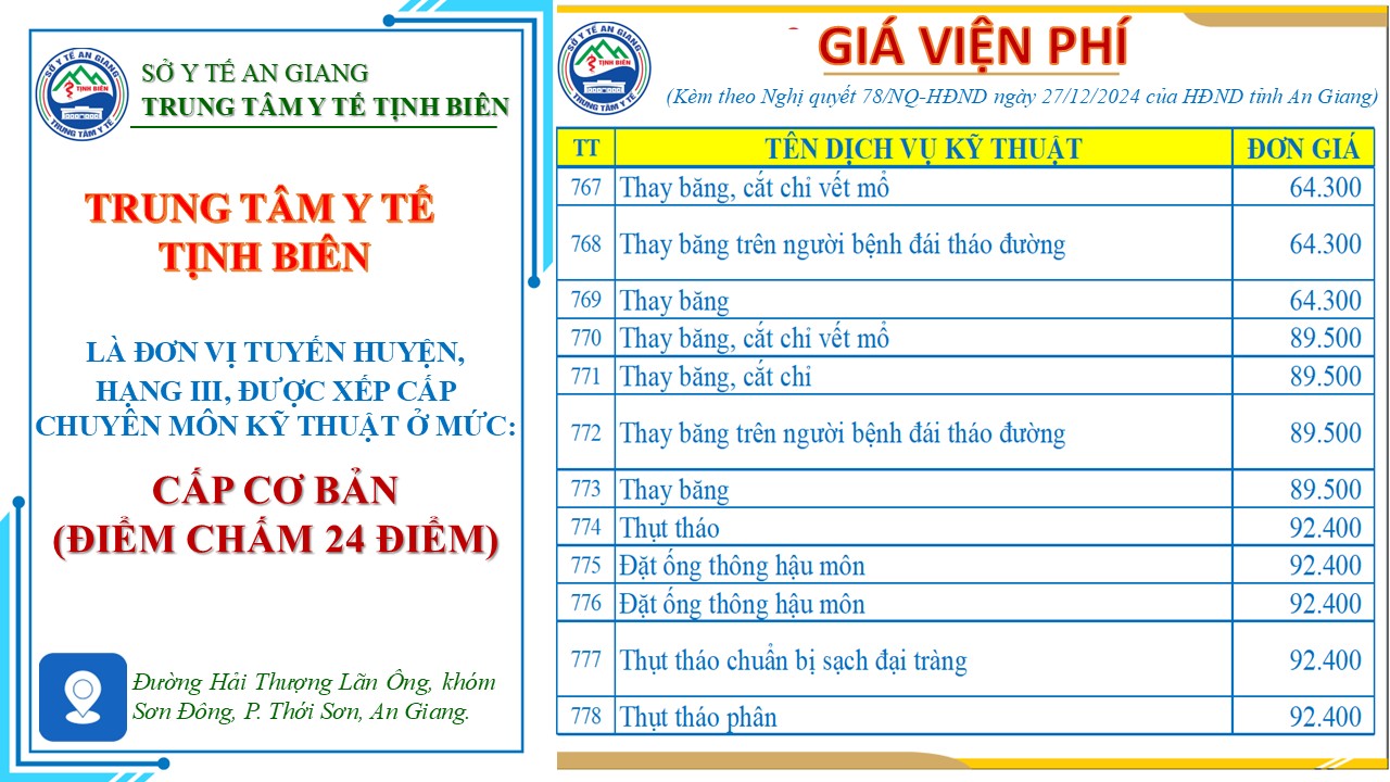 Đây là bảng danh mục giá viện phí gồm 1.013 danh mục, tổng cộng 129 slide. Mỗi slide tự động chuyển trong 08 giây. Trong đó bao gồm các nhóm: Tiền công khám, tiền giường, xét nghiệm, chẩn đoán hình ảnh, phẫu thuật, thủ thuật v.v..