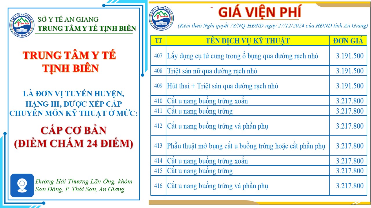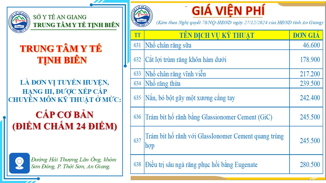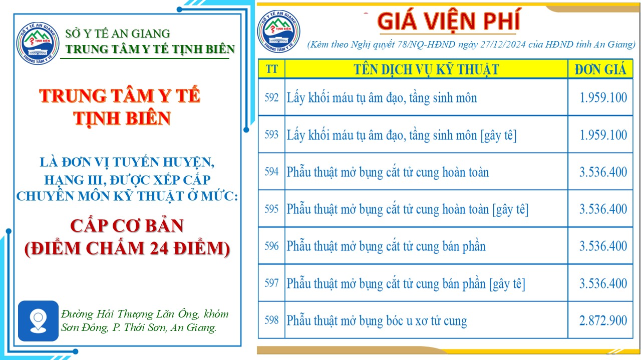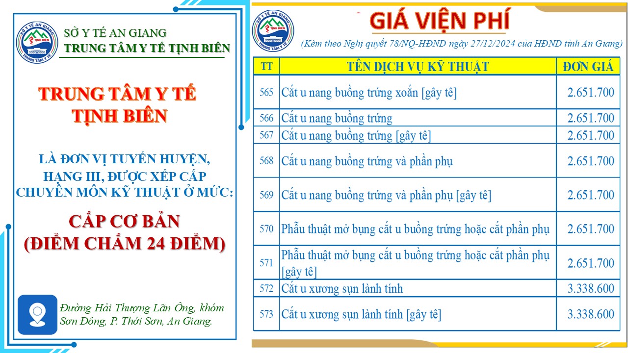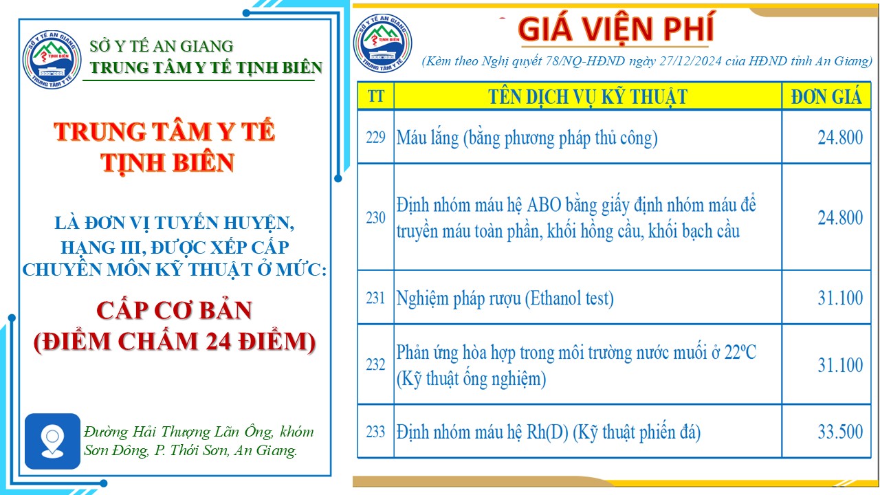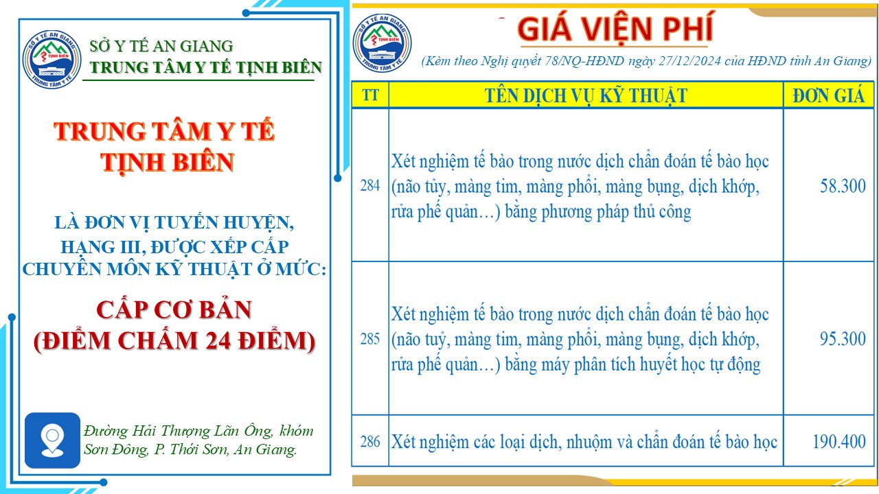 Đây là bảng danh mục giá viện phí gồm 1.013 danh mục, tổng cộng 129 slide. Mỗi slide tự động chuyển trong 08 giây. Trong đó bao gồm các nhóm: Tiền công khám, tiền giường, xét nghiệm, chẩn đoán hình ảnh, phẫu thuật, thủ thuật v.v..
