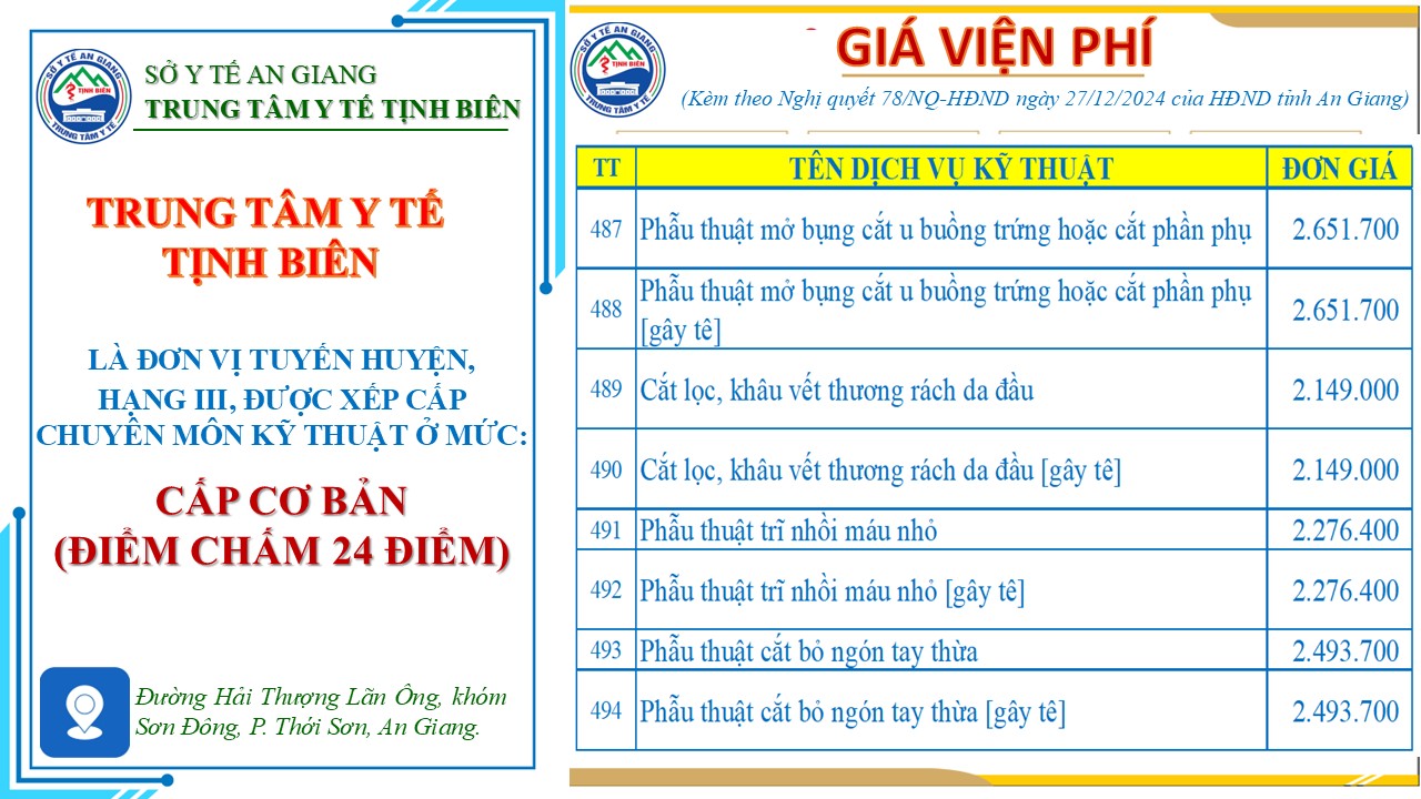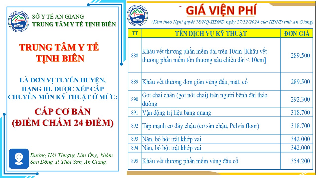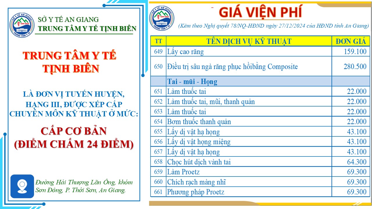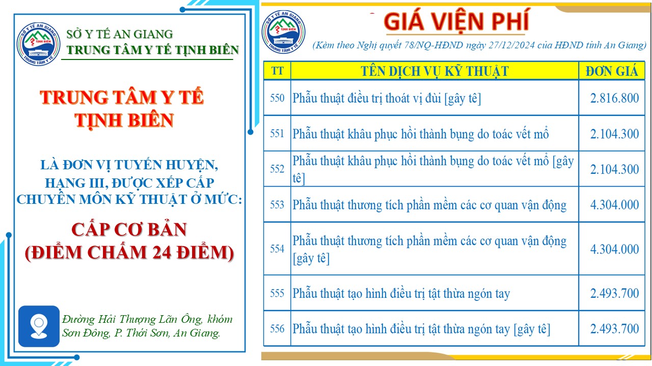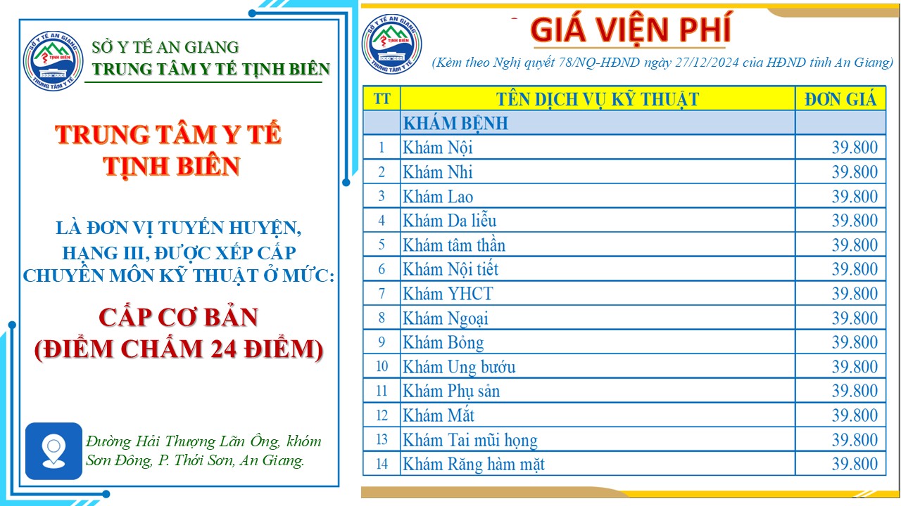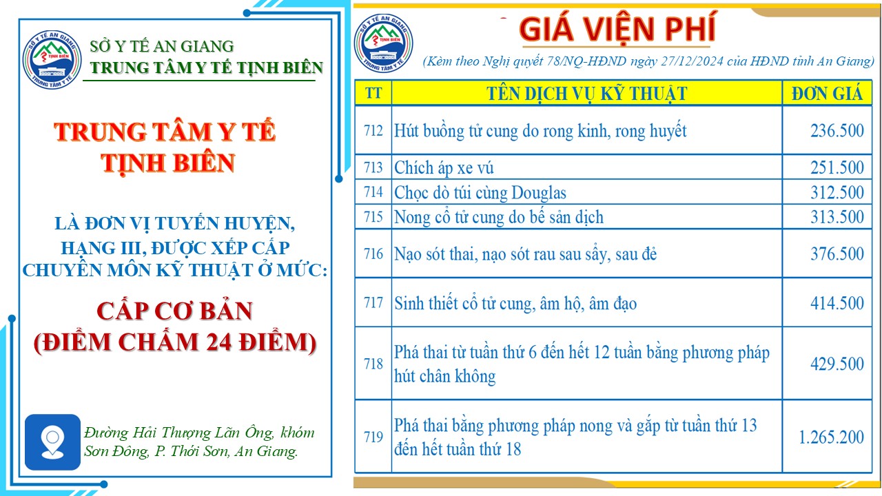 Đây là bảng danh mục giá viện phí gồm 1.013 danh mục, tổng cộng 129 slide. Mỗi slide tự động chuyển trong 08 giây. Trong đó bao gồm các nhóm: Tiền công khám, tiền giường, xét nghiệm, chẩn đoán hình ảnh, phẫu thuật, thủ thuật v.v..
