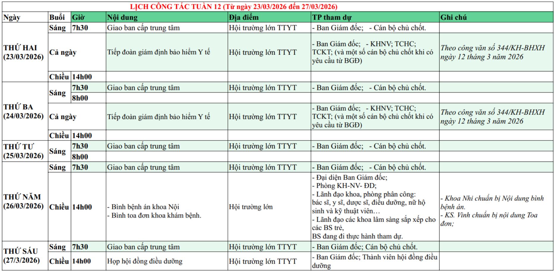 Tuần 12, năm 2026 (Từ ngày 23/03/2026 đến ngày 27/03/2026)
